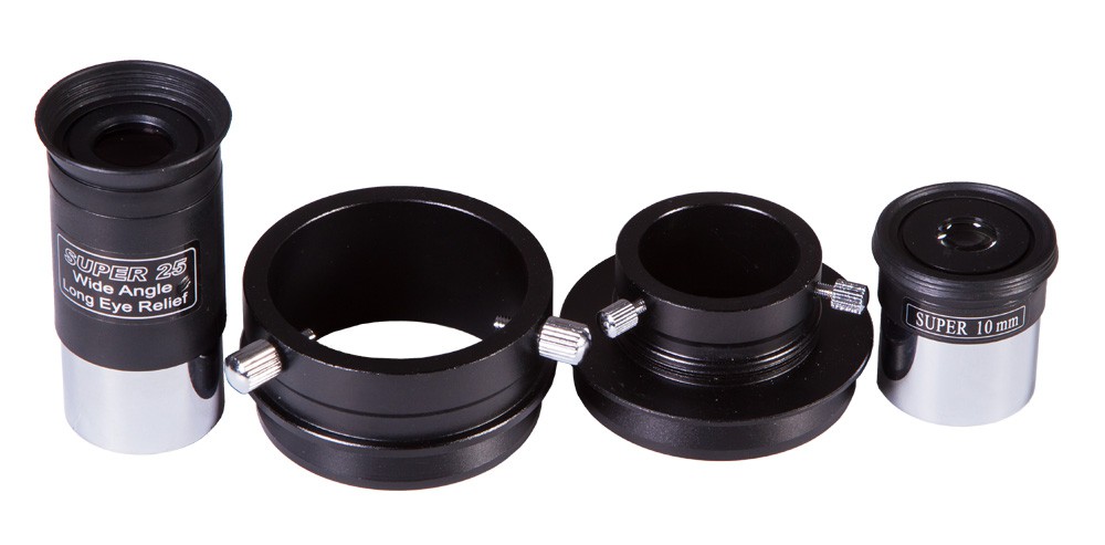 С телескопом поставляются 2 окуляра, имеющие фокусные расстояния 10 мм и 25 мм, и дающие с телескопом увеличение 65 и 26 крат. Линзы окуляров изготовлены из стекла и имеют многослойное просветление. Реечное фокусировочное устройство имеет посадочный диаметр под окуляры стандарта 2" (50,8 мм) с адаптером на 1,25" (31,75 мм) и позволяет использовать с телескопом множество других, имеющихся на рынке, окуляров, помимо входящих в комплект. С их помощью увеличение телескопа может быть поднято до полезного предела в 260 крат.