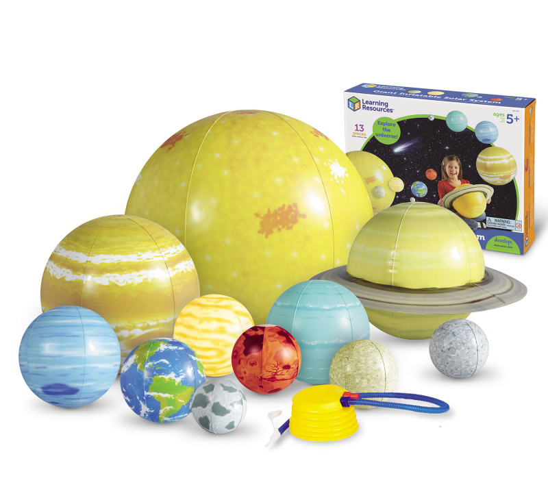 ножной насос, комплект для ремонта, модель Солнца (58см), модель Юпитера (36см), модель Сатурна с кольцами (28см), модель Нептуна (23см), модель Урана (23см), модель Венеры (19см), модель Земли (19см), модель Марса (15см), модель Меркурия (15см), модель Плутона (13см), модель Луны (13см).