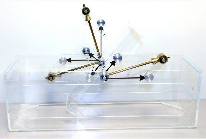 Модель предназначена для демонстрации принципов сложения моментов пар сил, действующих в пересекающихся плоскостях. Используется в качестве наглядного пособия при изучении раздела «Статика» в курсах теоретической механики и инженерной механики в университетах и колледжах.
