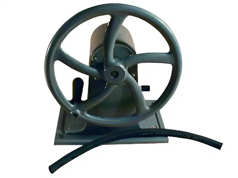 Прибор представляет собой масляный поршневой насос, основанный на отсечке воздуха. Движение поршня обеспечивается шатунно-кривошипным механизмом, соединенным с ручным приводом.