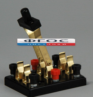 Переключатель представляет собой пластмассовое основание, на котором установлены две пары поворотных ножей с рукояткой, четыре упругие губки и шесть универсальных зажимов. Имеет три положения. Среднее – нейтральное. Допустимое напряжение – не более 24В с током нагрузки до 2А.