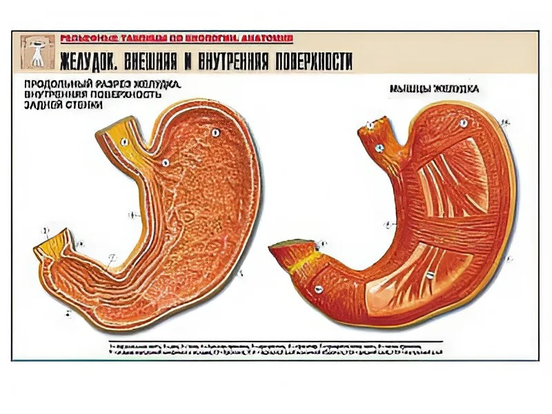 Рельефная таблица "Желудок. Внешняя и внутренняя поверхности" (формат А1, матовое ламинирование)