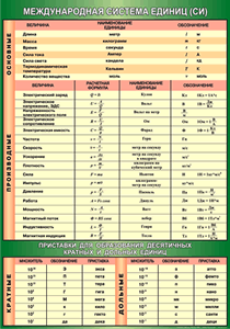 Таблица "Международная система СИ. Приставки для образования десятичных кратных и дольных единиц" (100х140 сантиметров, винил)