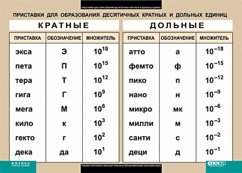 Таблица. Физика. Приставки для образования десятичных кратных и дольных единиц. - fgospostavki.ru - Белово