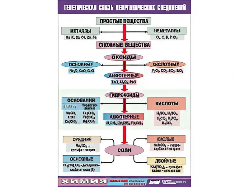 Главная Каталог Демонстрационные учебно-наглядные пособия Кабинет химии Таблица "Генетическая связь неорганических соединений" (винил 100x140)