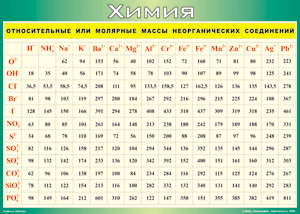 Таблица "Относительные или молярные массы неорганических соединений"  (100х140 сантиметров, винил) - fgospostavki.ru - Белово