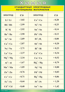 Таблица "Стандартные электродные потенциалы материалов" (100х140 сантиметров, винил)