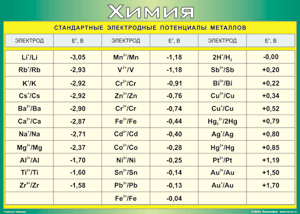 Таблица "Стандартные электродные потенциалы металлов" (100х140 сантиметров, винил)