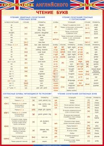 Главная Каталог Демонстрационные учебно-наглядные пособия Кабинет иностранных языков Таблица "Грамматика английского языка. Чтение букв" (100х140 сантиметров, винил)