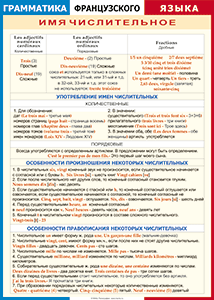 Таблица "Грамматика французского языка. Имя числительное (употребление, особенности произношения и правописания)" (100х140 сантиметров, винил)