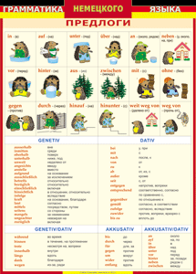Таблица "Грамматика немецкого языка. Предлоги" (100х140 сантиметров, винил) - fgospostavki.ru - Белово