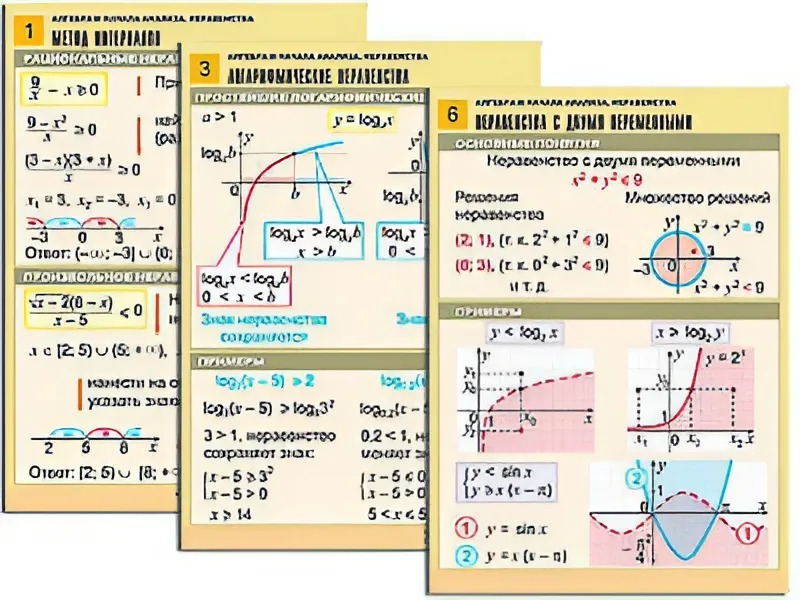 Комплект таблиц "Алгебра и начала анализа. Неравенства" (6 таблиц, формат А1, ламинированные) - fgospostavki.ru - Белово