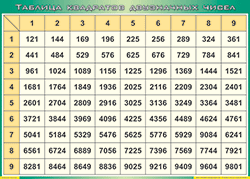 Главная Каталог Демонстрационные учебно-наглядные пособия Кабинет математики Таблица квадратов двузначных чисел (100х140 сантиметров, винил)