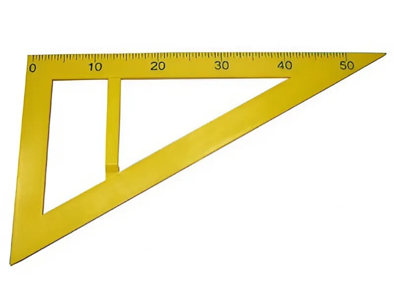Позволяет строить углы 30, 60, 90, 120 и 150 градусов, перпендикулярные прямые, прямоугольные треугольники и другие геометрические фигуры на классной доске.