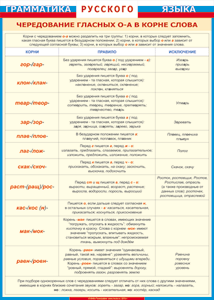 Таблица "Грамматика русского языка.Чередование гласных о - а в корне слов" (100х140 сантиметров, винил) - fgospostavki.ru - Белово