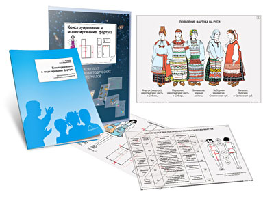 Наглядно-методические материалы комплекта иллюстрируют историю возникновения фартука, разнообразие современных моделей, правила снятия мерок, простейшие приемы конструирования и моделирования фартука, подготовки выкройки к раскрою, схему цветоделения.