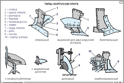 2. Типы корпусов плуга