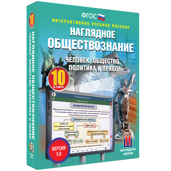 Интерактивное учебное пособие разработано с учётом ФГОС СОО и примерной программы по обществознанию среднего (полного) общего образования. Материал интерактивного учебного пособия «Человек. Общество. Политика и право. 10 класс» содержит темы курса обществознания 10 класса. Пособие можно использовать с любыми учебниками, входящими в Федеральный перечень.