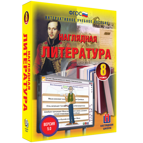Пособие можно использовать с любыми учебниками, входящими в Федеральный перечень. Интерактивное учебное пособие «Наглядная литература. 8 класс» содержит все темы годового учебного курса по литературе. В каждую тему включены тестовые контрольные задания, интерактивные упражнения на усвоение теоретического материала и на отработку практических навыков.