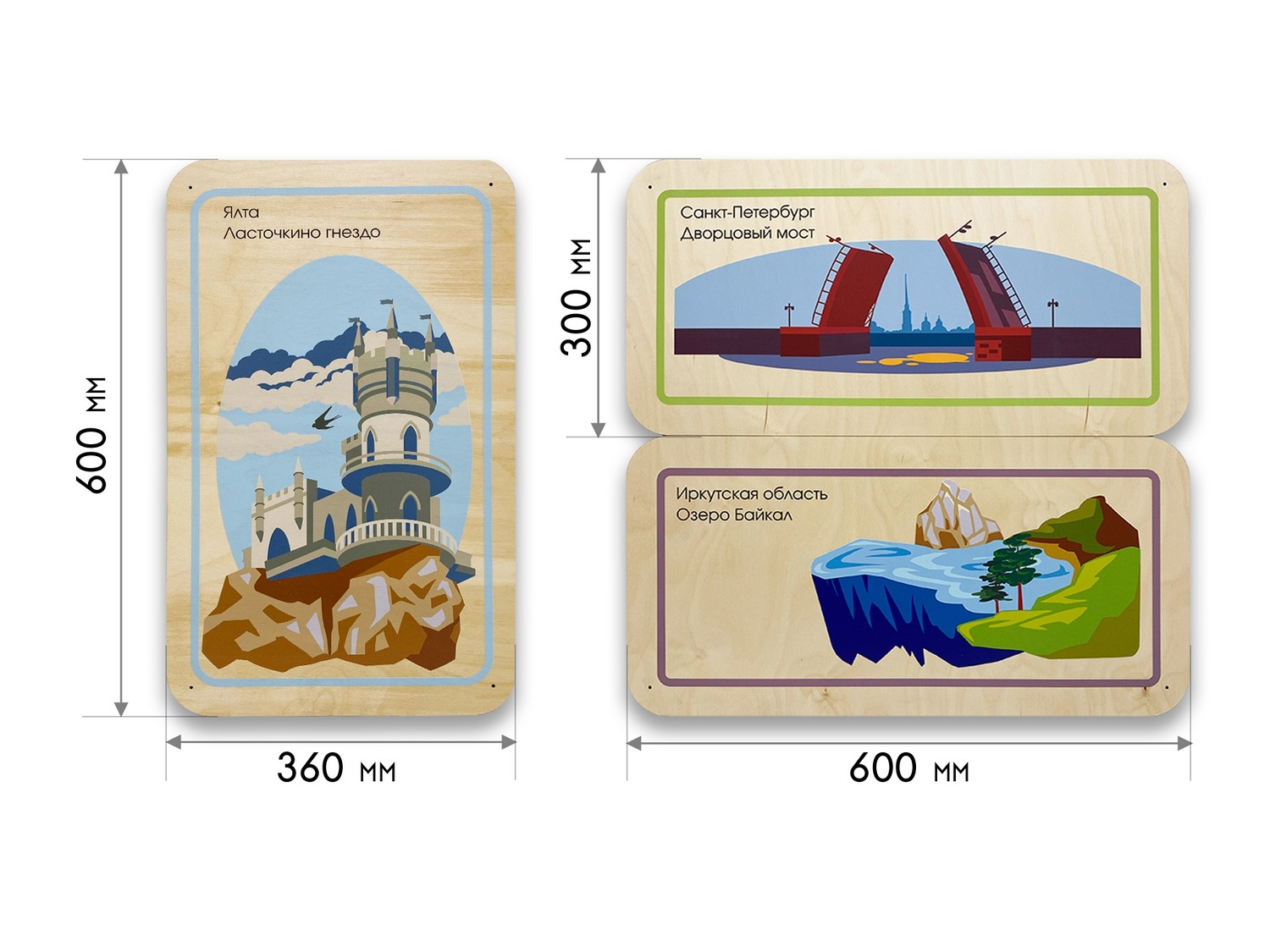 Главная Каталог Федеральные проекты Патриотическое воспитание Набор стеновых панелей «Памятные места России - Ялта, Санкт-Петербург, Иркутск»