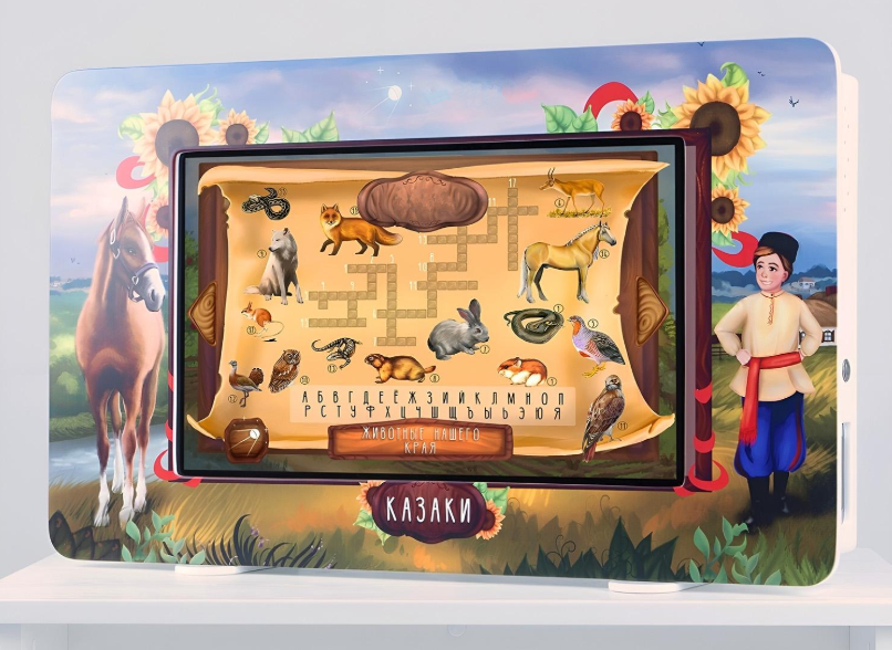 Главная Каталог Интерактивное оборудование Интерактивный программно-аппаратный комплекс Методический интерактивный комплекс "Региональный компонент Казаки" 43"