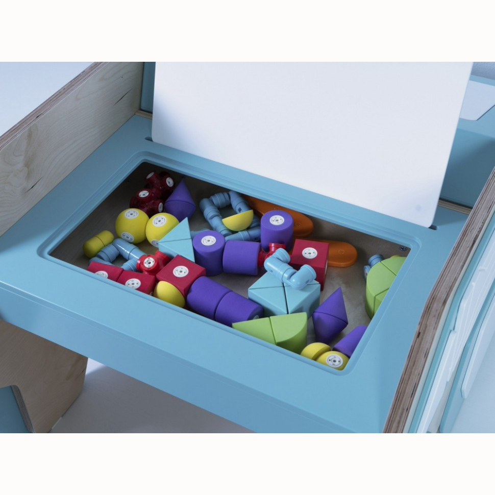 Методический интерактивный комплекс представляет собой серию тактильных сенсорных панелей Монтессори, набором для конструирования и интерактивный экран.