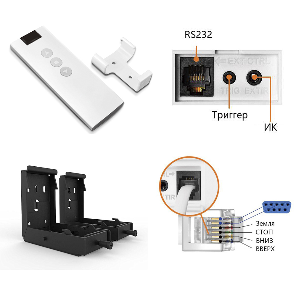 • В корпус экрана встроена панель управления включающая: RS232, триггер, ИК.