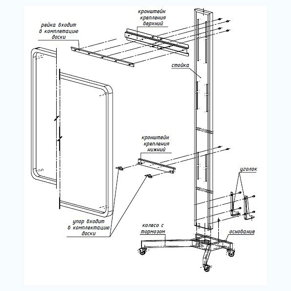 Мобильная стойка для интерактивных досок с возможностью установки короткофокусных и ультракороткофокусный проекторов. Совместима с большинством креплений для проекторов. Перемещение доски относительно стойки, возможно, как в вертикальном, так и в горизонтальном направлении.