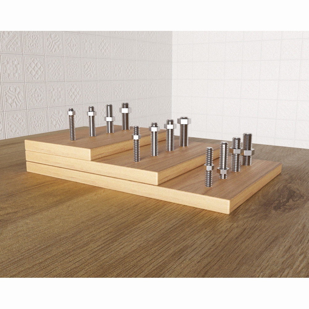 Состоит из подставки в 3 яруса с расположенными на них резными штырьками различной толщины. На штырьки необходимо прикручивать гайки подходящего размера. После того, как ребенок освоил движения, он учится регулировать их интенсивность и плавность.