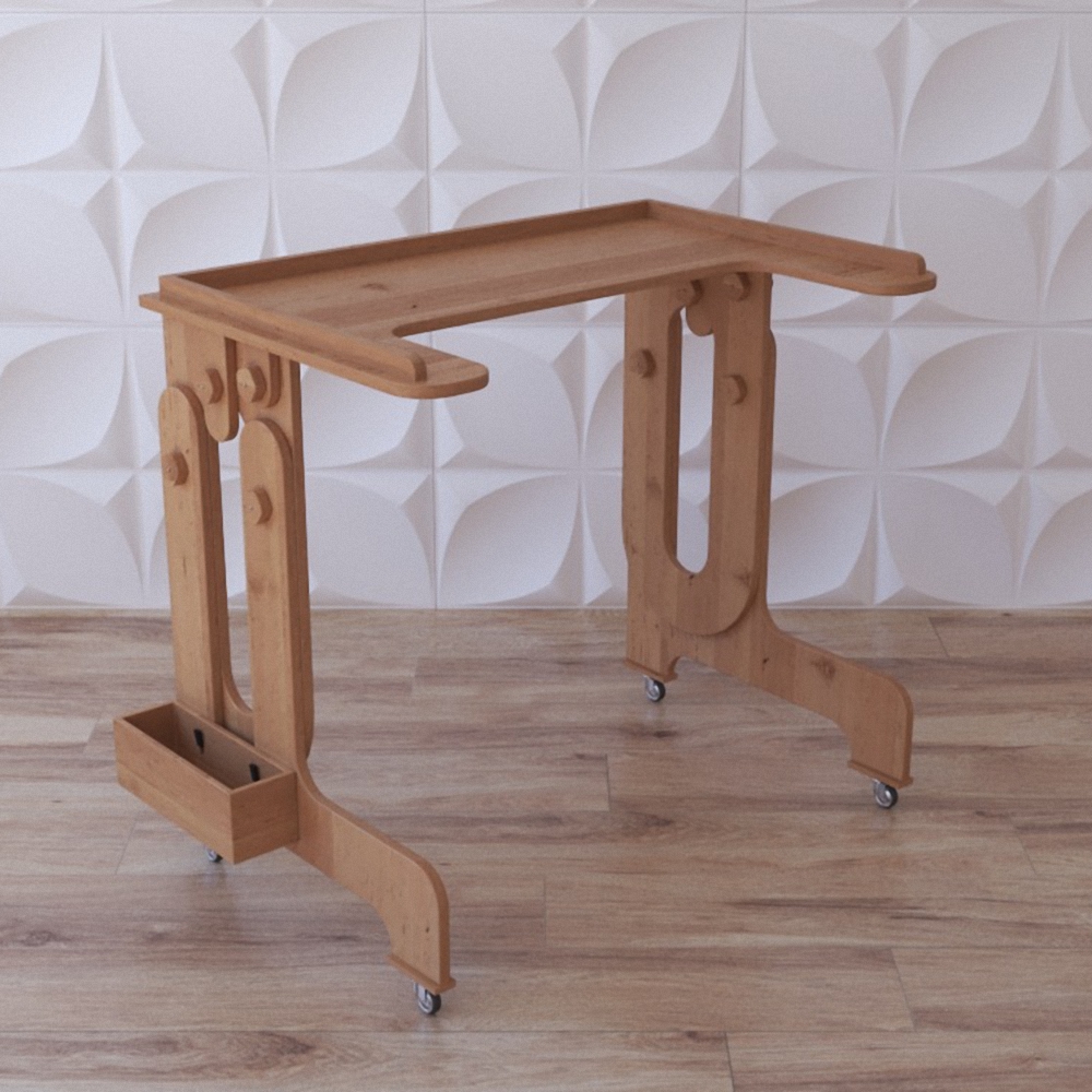 Стол представленной модели предназначен для занятий с детьми, имеющими заболевания в области ЦНС. Конструкция стола была разработана с учётом всех особенностей вышеупомянутых заболеваний и растущего детского организма, благодаря чему за столом ребёнок не будет испытывать абсолютно никакого дискомфорта. Стол можно отрегулировать до нужной высоты и имеет колёсики для комфортного перемещения; есть место для хранения письменных принадлежностей. Предназначен для оборудования кабинетов специалистов, занимающихся реабилитацией детей-инвалидов, учебных помещений в центрах коррекции и реабилитации.