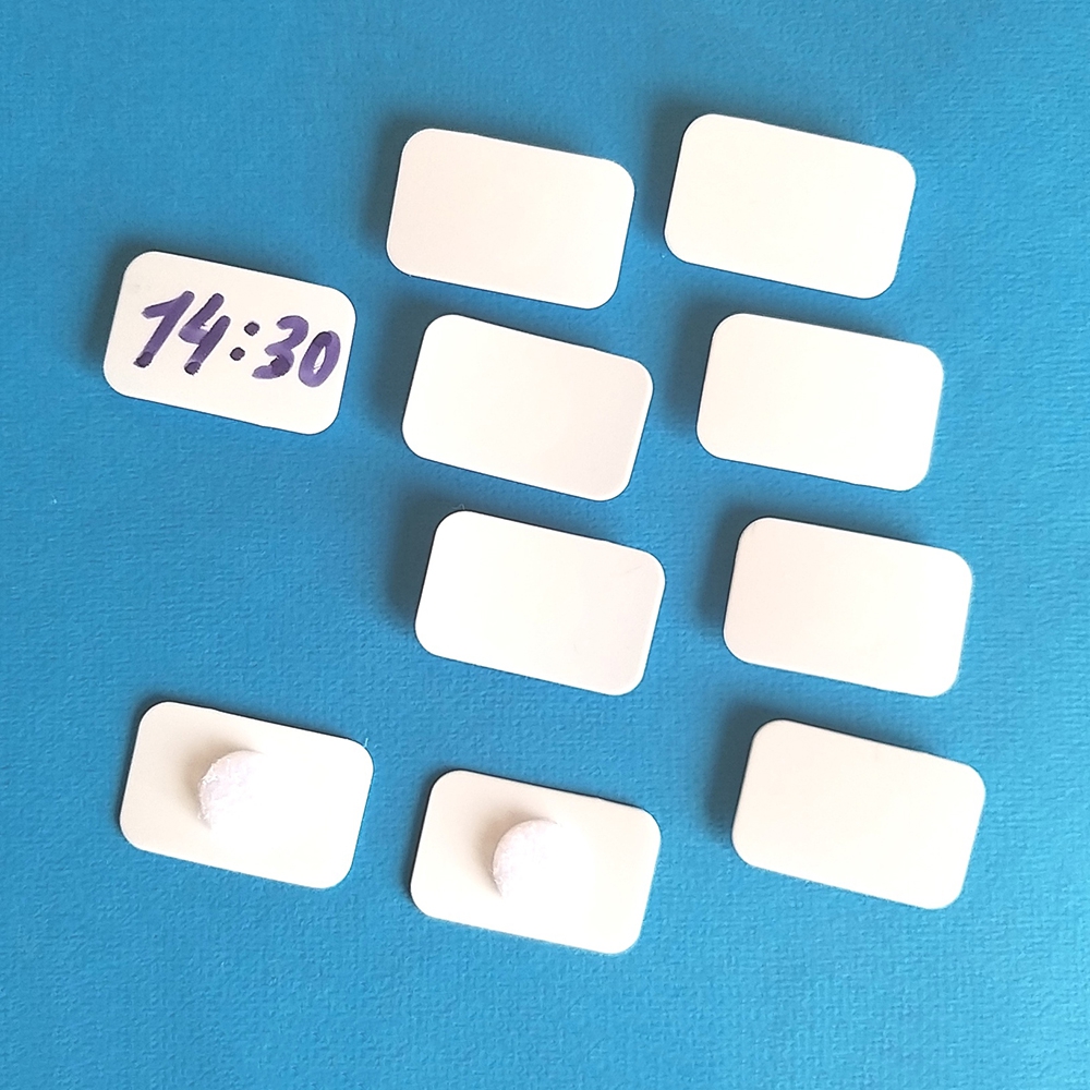 Пластиковые картчки размером 2,5 см * 4 см используются для написания времени, чтобы точно обозначить какое-либо событие в расписании на день.