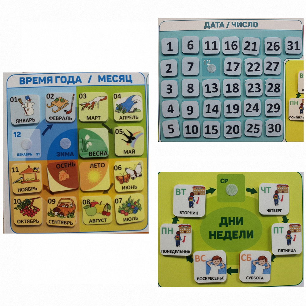 - Визуально запомнить цикличность времен года, месяцев, дней недели.