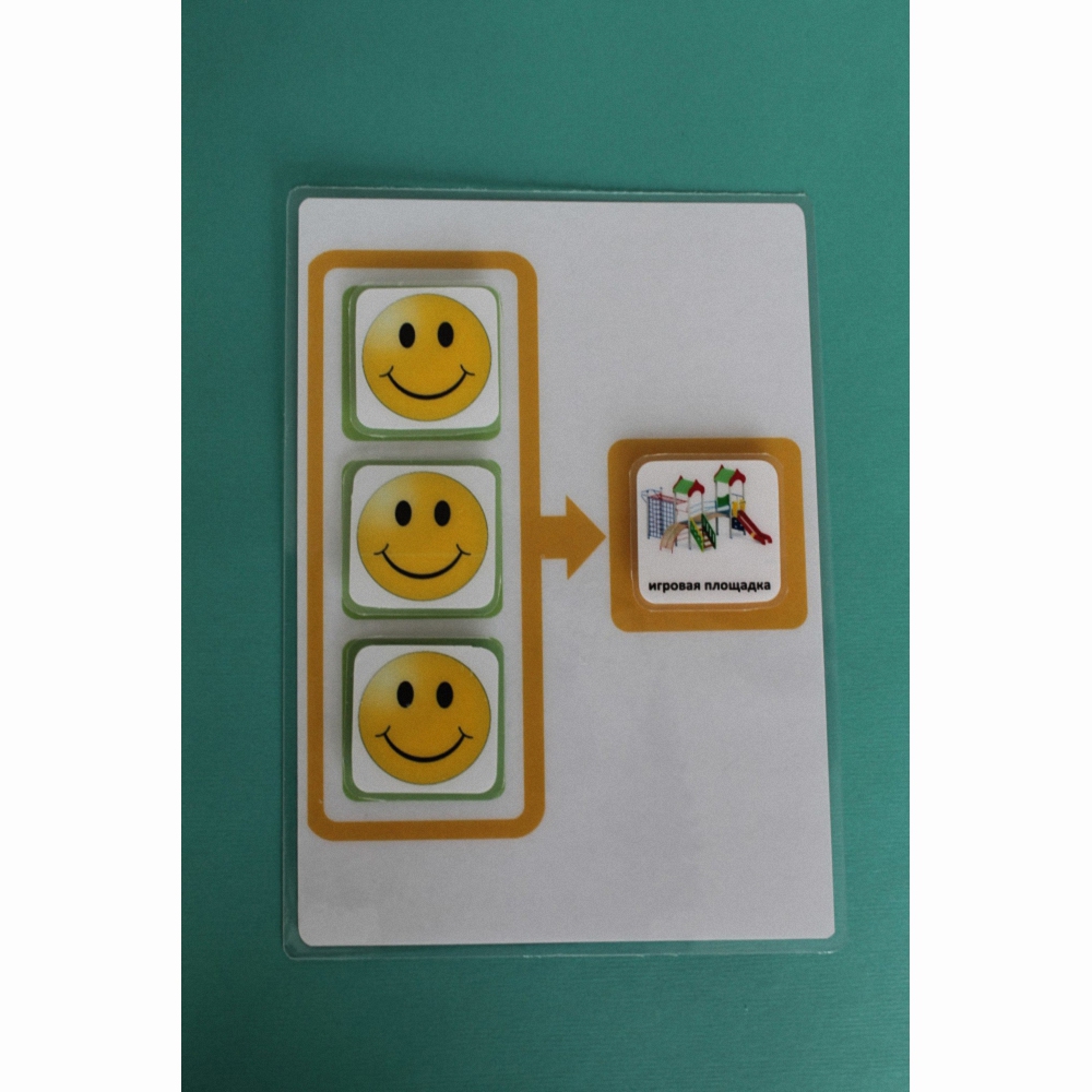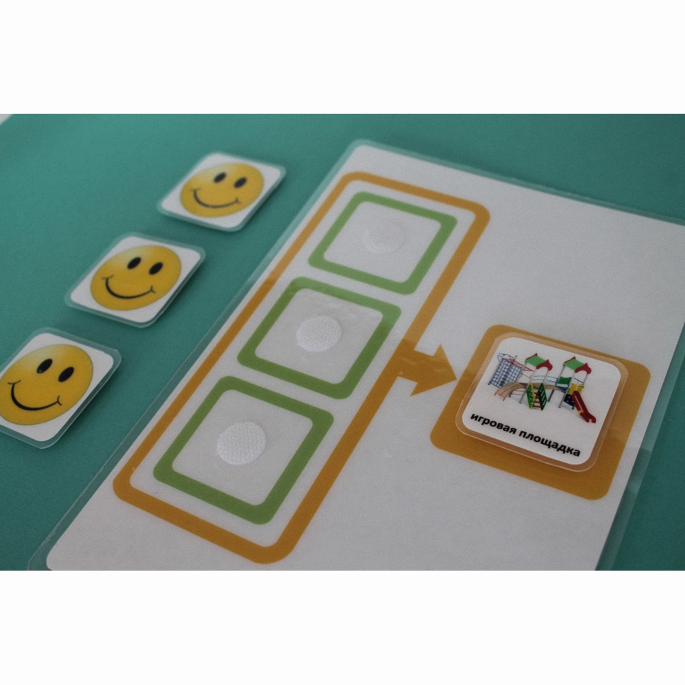 Малыш может получить жетон сразу же, как продемонстрирует желаемое поведение. Далее он собирает заранее оговоренное количество жетонов, чтобы в результате обменять их на отсроченный приз — что-то более значимое для ребенка (конфета, игрушка, книга). Такой подход позволяет стимулировать аутиста к учебе практически без перерывов на вручение вознаграждения.