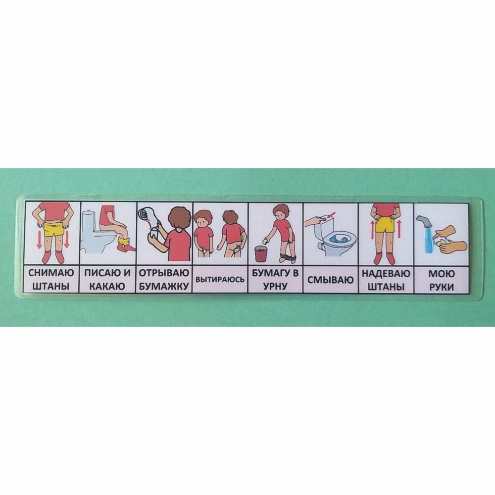 Самостоятельность в туалете - очень важный навык. Визуальная последовательность поможет как на ранних этапах обучения - пояснит какие действия в какой последовательности нужно выполнять. И может остаться в качестве подсказки тогда, когда навык будет освоен.