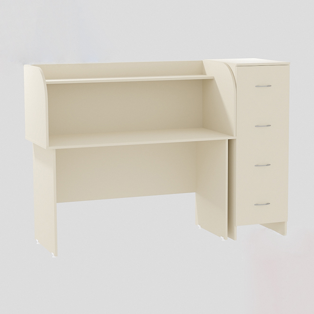 Сбоку стола установлен модуль из 4 выдвижных ящика. В них удобно хранить вещи, необходимые для преподавания или проведения логопедических занятий. Сверху ящиков можно поставить цветок или другой элемент декора. Широкая столешница позволяет удобно расположить предметы для работы, чтобы они не мешали.