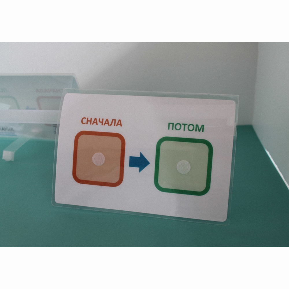 Визуальное расписание "Сначала-Потом" - ламинированный лист А 4. с липучками и крепежом для устойчивости.