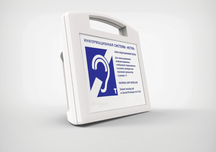 Система информационная переносная предназначена для передачи аудиоинформации лицам с нарушенной функцией слуха при повышенном уровне окружающего шума или при наличии преграды между собеседниками в общественных и многолюдных местах, в зонах обслуживания населения (возле стоек информации, кассах).