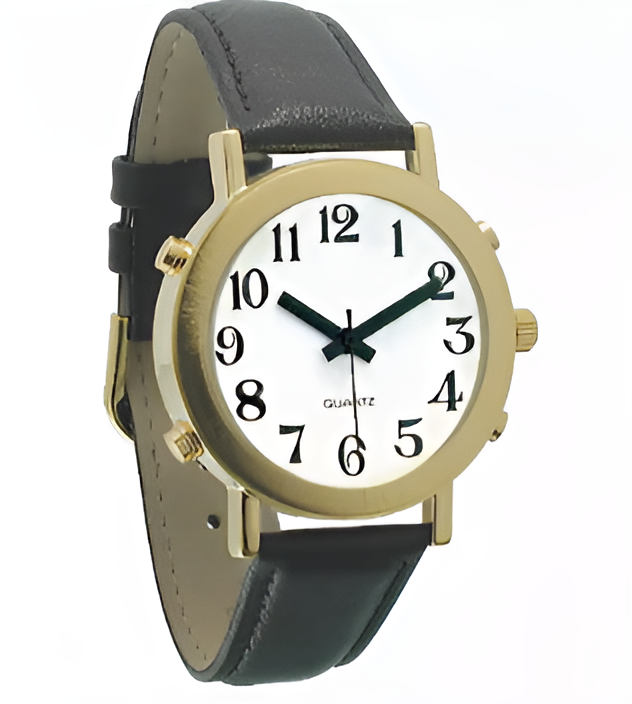 Часы для слабовидящих людей с белым циферблатом на кожаном ремешке - fgospostavki.ru - Белово