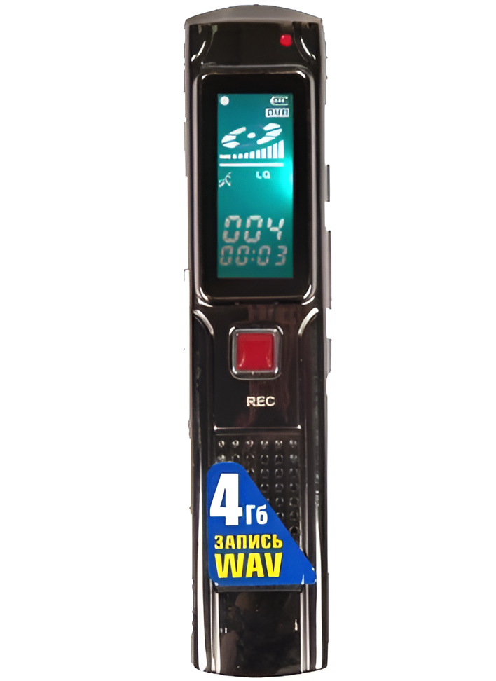 Миниатюрный диктофон, который может работать как mp3-плеер. Материал корпуса — металл. Диктофон оснащен функцией, которая автоматически запускает запись при наличии внешних звуков.