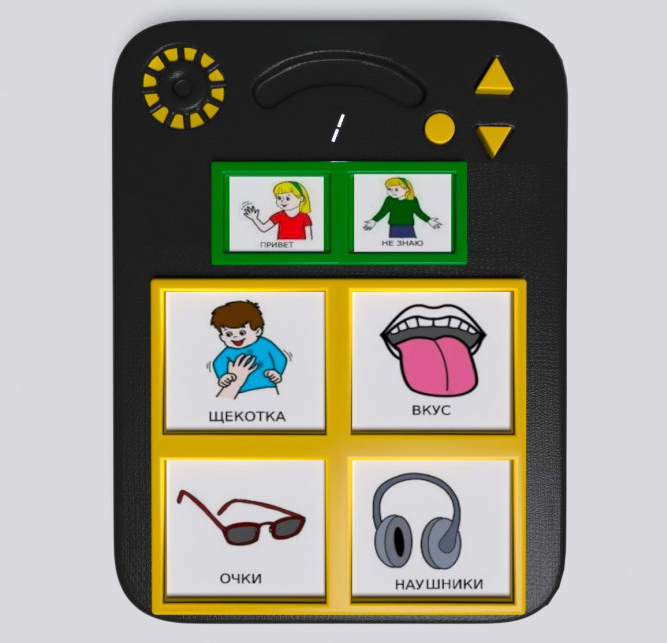 На этот коммуникатор можно записать до 32 сообщений! Каждая из 4-х кнопок имеет по 7 уровней записи, а общее время памяти – 32 минуты. Также есть 2 фиксируемых сообщения. Это позволяет использовать устройство для длительного общения людям разного возраста, которые в силу различных обстоятельств и особенностей не могут поддерживать диалог обычным образом. Сам аппарат имеет прямоугольный корпус с ручкой для переноса, на котором размещены 9 разнофункциональных кнопок (воспроизведение, выбор уровня, настройка громкости). В наборе имеются контрастные фиксаторы-накладки на крышки, которыми можно закреплять подписанные изображения на карточках. При помощи этого устройства ребенок знакомиться с окружающими, если записанное сообщение озвучивает следующую информацию: имя, возраст, диагноз. Представленная модель выполнена из прочного пластика – это обеспечивает ударопрочность и долгий срок службы.