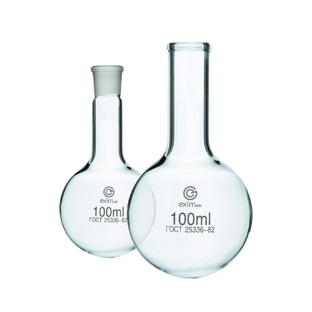 Колба круглодонная 100 мл предназначена для нагревания растворов в различных химических процессах, связанных с перегонкой веществ, в ходе выполнения лабораторных и демонстрационных опытов в рамках изучения курса химии.