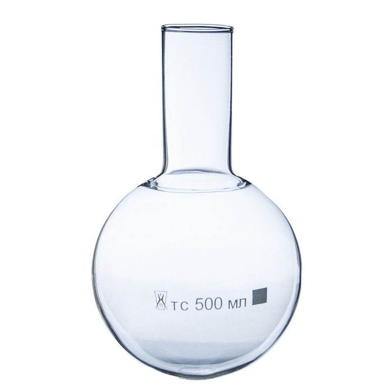 Колба круглодонная 500 мл предназначена для нагревания растворов в различных химических процессах, связанных с перегонкой веществ, в ходе выполнения лабораторных и демонстрационных опытов в рамках изучения курса химии.