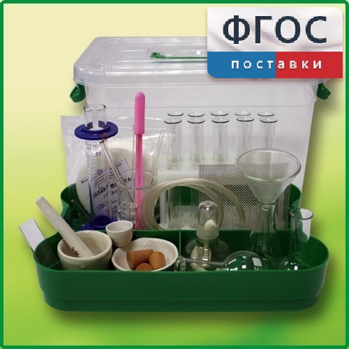 Лоток с лабораторной посудой и принадлежностями в индивидуальной упаковке используется при проведении практических и лабораторных работ по химии в 8-11 классах общеобразовательной школы. Лабораторная посуда набора размещается в удобном лотке с ложементами, выполненном из ударопрочного полистирола. Набор приобретается из расчета 1 шт. на двоих учащихся.