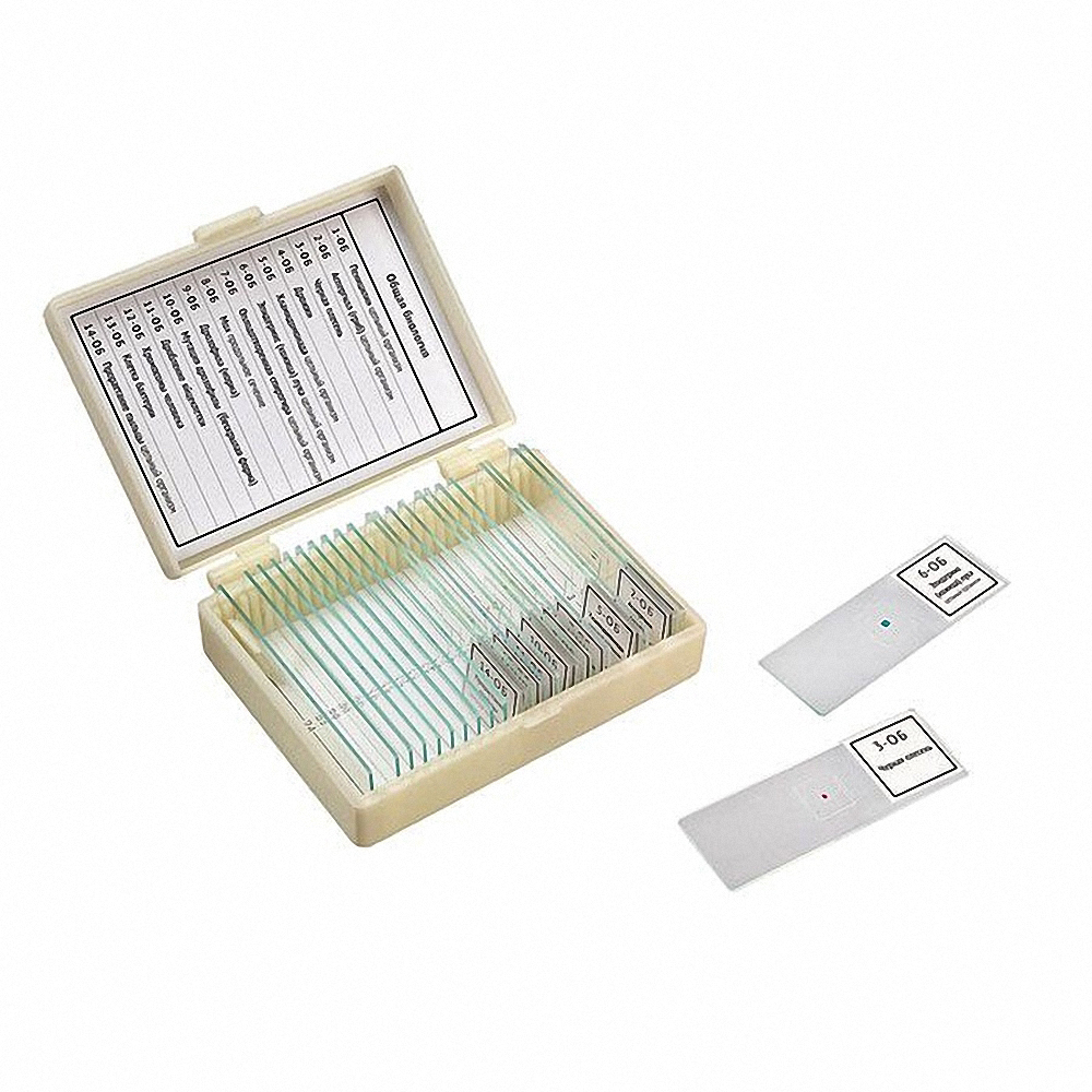 Набор микропрепаратов  по общей биологии предназначен для использования в общеобразовательных учреждениях на уроках биологии, при проведении лабораторных работ по изучению живых  организмов на клеточном и гистологическом уровнях.