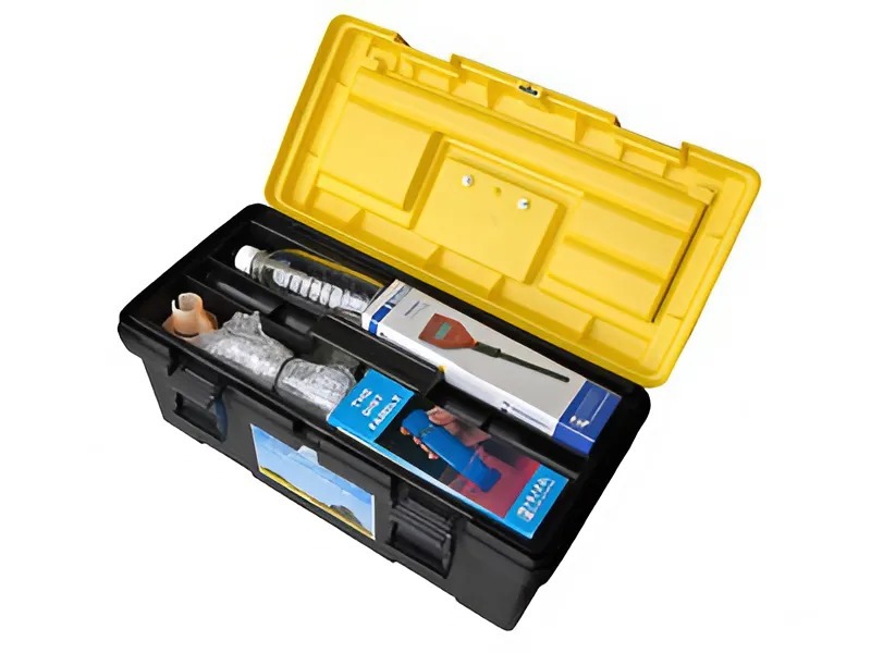 Комплект представляет собой мини-лабораторию, сопровождаемую авторским учебным пособием и укомплектованную в чемоданчик, удобный для работы в полевых условиях. Включает в себя портативную приборную базу (термометр электронный со щупом, рН-метр электронный, кондуктометр), наборы химических реактивов, лабораторной посуды, печатных материалов, необходимых для проведения количественных, полуколичественных и качественных исследований воды, воздуха, осадков, снежного покрова, почвы.