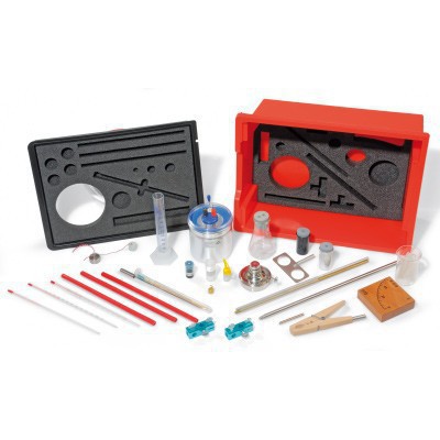 Набор оборудования для проведения 22 учебных опытов по разделу «Теплота». Поставляется в прочной пластмассовой коробке с пенопластовыми вкладышами, выполненными по форме элементов оборудования, и с прозрачной крышкой. В комплект поставки входит компакт-диск, содержащий указания по подготовке и проведению опытов. Подготовка и проведение опытов осуществляются на основании для учебных опытов, так что установки для опытов не занимают много места, оставаясь ясными и понятными с точки зрения компоновки и целей  эксперимента.