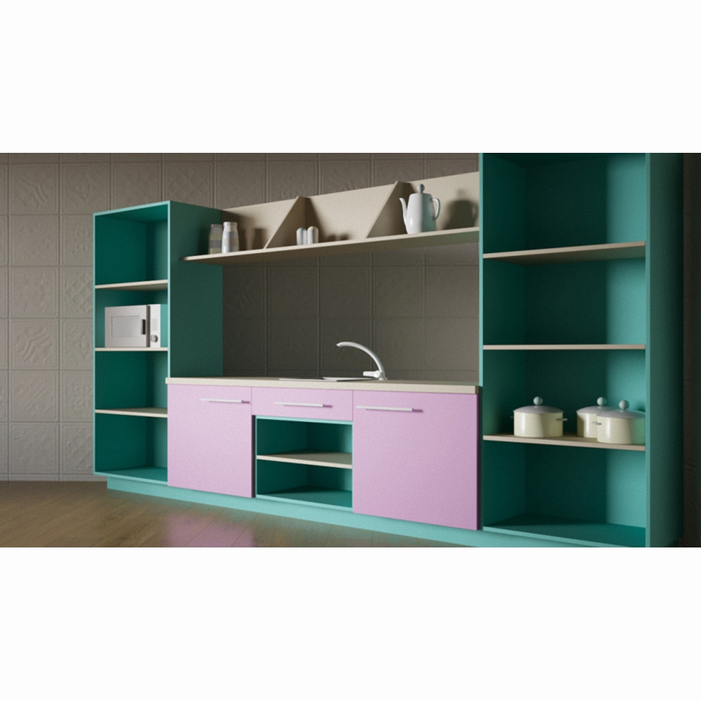 Детская кухня «Анастасия» окрашена в приглушенные розово-голубые тона, что позволяет поместить ее в любое помещение, не опасаясь того, что она может не подойти или будет неуместно выделяться. Фасад изготовлен из прочного материала высокого качества – это обеспечит долгое пользование без потери привлекательного внешнего вида.