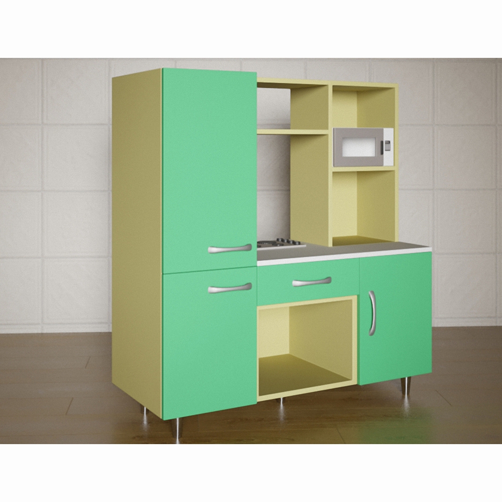 Кухня детская «Элиза» изготовлена из материалов высокого качества, что обеспечивает безопасное использование ее в течении долгого времени. Фасады окрашены в 2 цвета – мятный и кремовый, которые выгодно дополняют друг друга. Кухня компактна, но при этом имеет достаточно места для размещения всего, что может понадобиться для игры с ней.