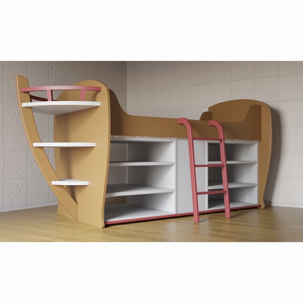 Кровать-чердак предназначена для детей от 3 до 12 лет. Конструкция кровати надежна и прочна – это гарантирует безопасную эксплуатацию: лестница расположена под небольшим наклоном, а ступеньки надежно закреплены; форма предотвращает соскальзывание ноги ребенка. Кровать также оборудована множеством полок, где ребенок может хранить свои вещи, книги и игрушки. Выполнена в нейтральной цветовой гамме, что позволяет использовать ее в помещении с любым интерьером.