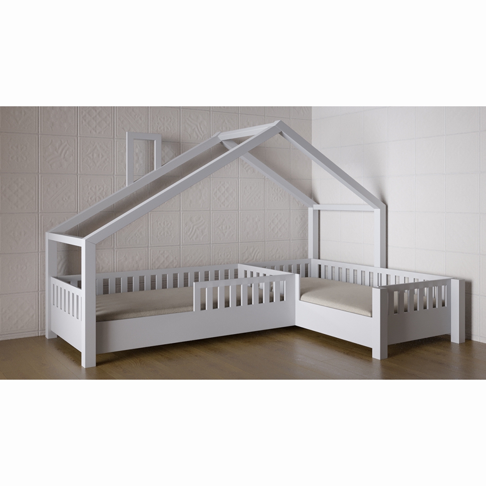 Детская двухместная кровать предназначена для детей от 3 до 12 лет. Ее можно использовать в помещении с любым интерьером – воздушная и светлая конструкция не будет смотреться громоздко, несмотря на немаленькие размеры. По форме напоминает домик со слегка скошенной крышей и печной трубой. Дизайн наиболее простой и лаконичный – благодаря этому можно украсить место для сна ребенка дополнительными аксессуарами – можно повесить балдахин или добавить ночник-гирлянду. Универсальна – подойдет и для мальчиков, и для девочек. Имеет бортики безопасности. Конструкция кровати надежна и прочна – это гарантирует долгую эксплуатацию.